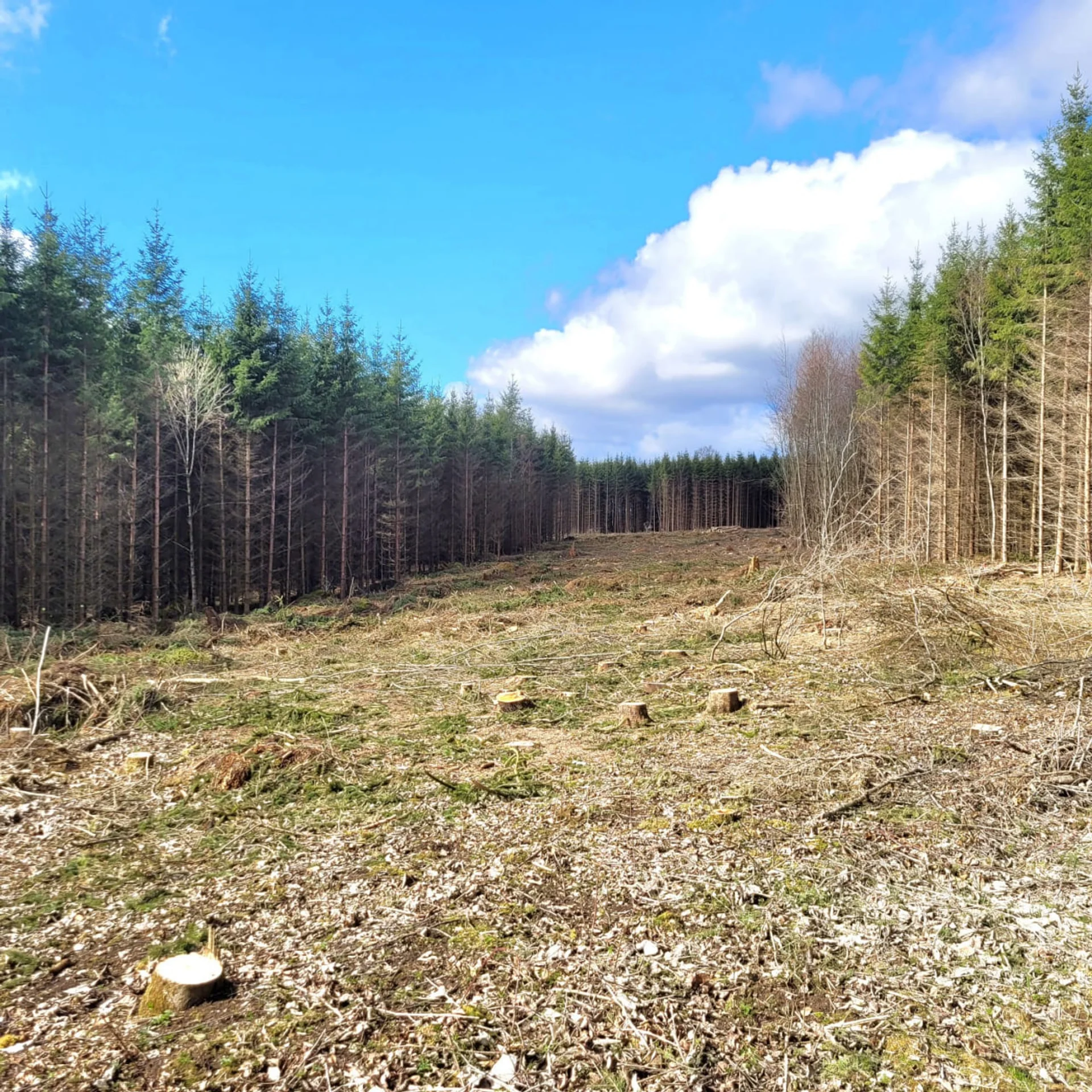 - gerodete Schneisen und verbreiterte Forstwege für Schwerlastverkehr,