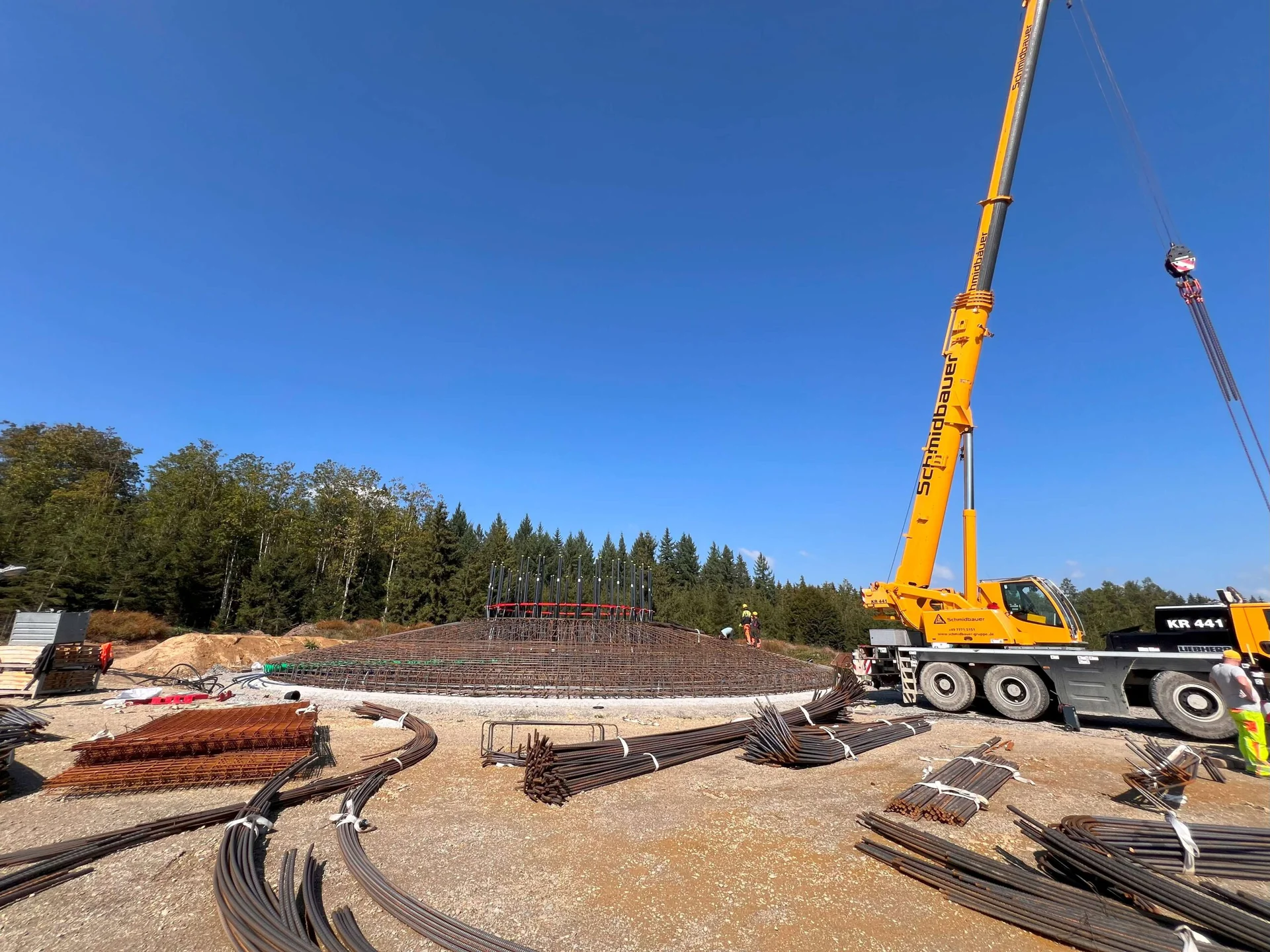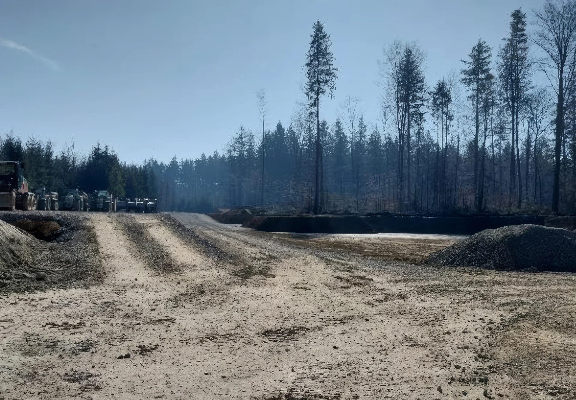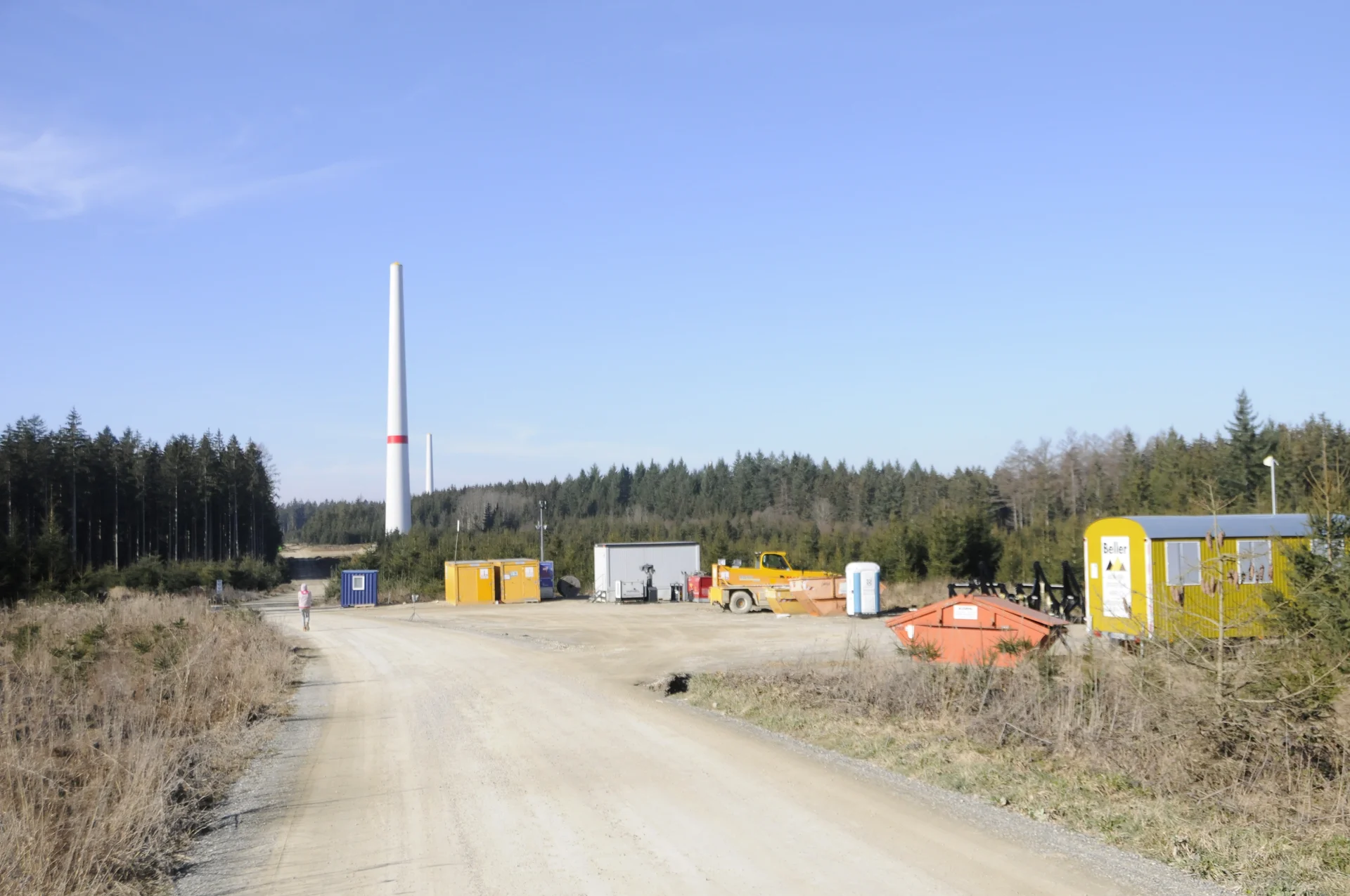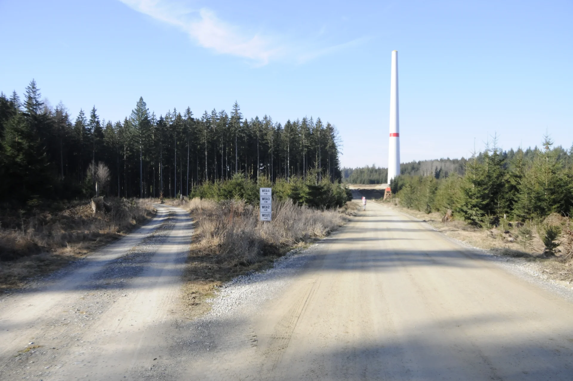 Der Bau einer Windkraftanlage im Wald beschränkt sich nicht auf einen „Mast im Grünen“. Jede Anlage erfordert breite, ganzjährig befahrbare Zufahrtsstraßen für Schwertransporte, großflächige Kranstellflächen und Lagerplätze, umfangreiche Rodungen sowie große Fundamentgruben aus Beton und Stahl. Hinzu kommen Leitungstrassen, Kabelgräben und Einspeisepunkte, die den Wald durchschneiden und bislang unberührte Bereiche dauerhaft verändern.