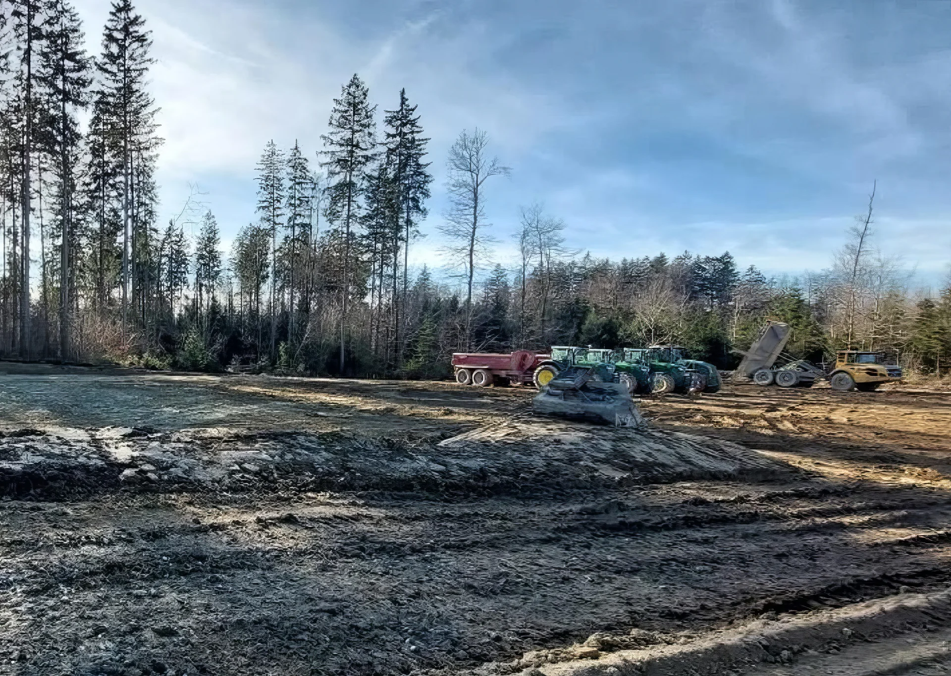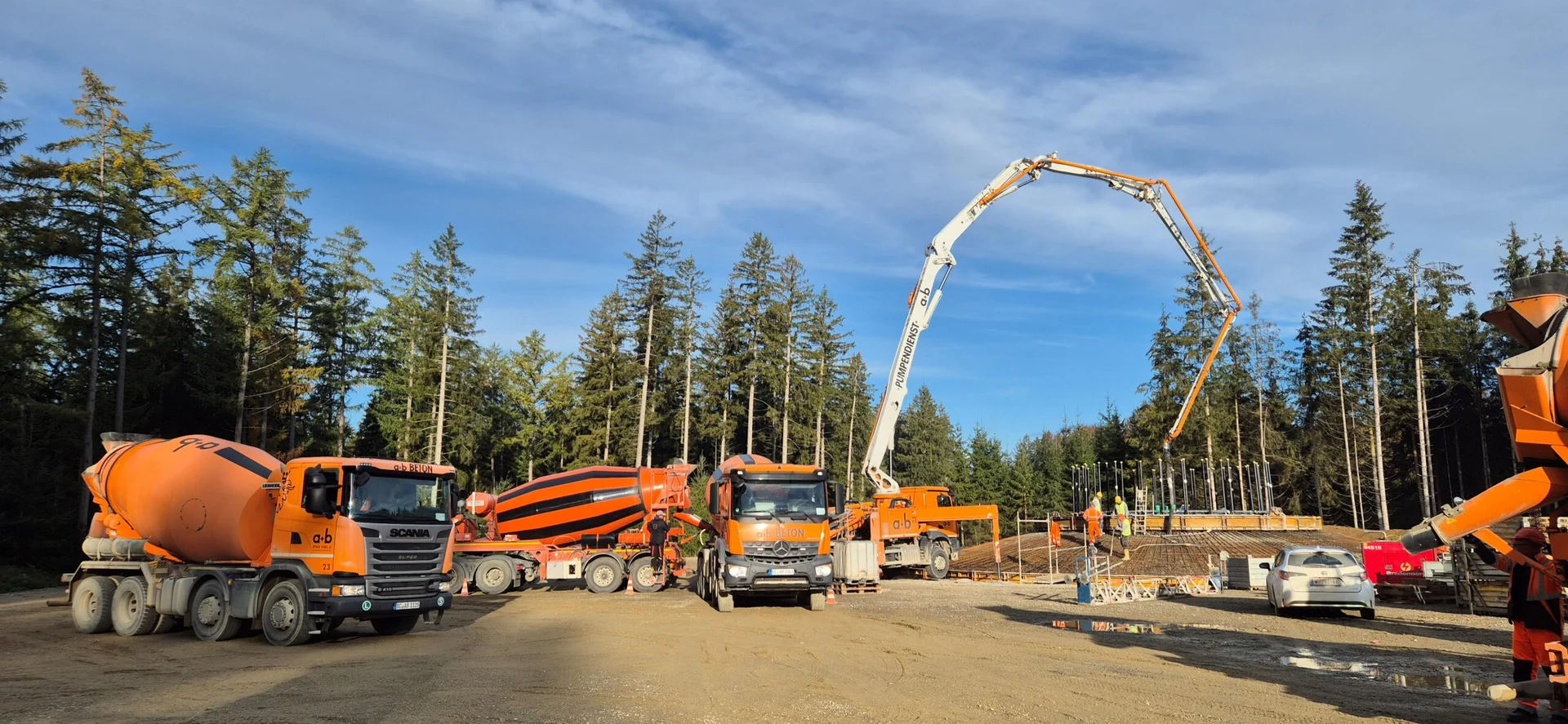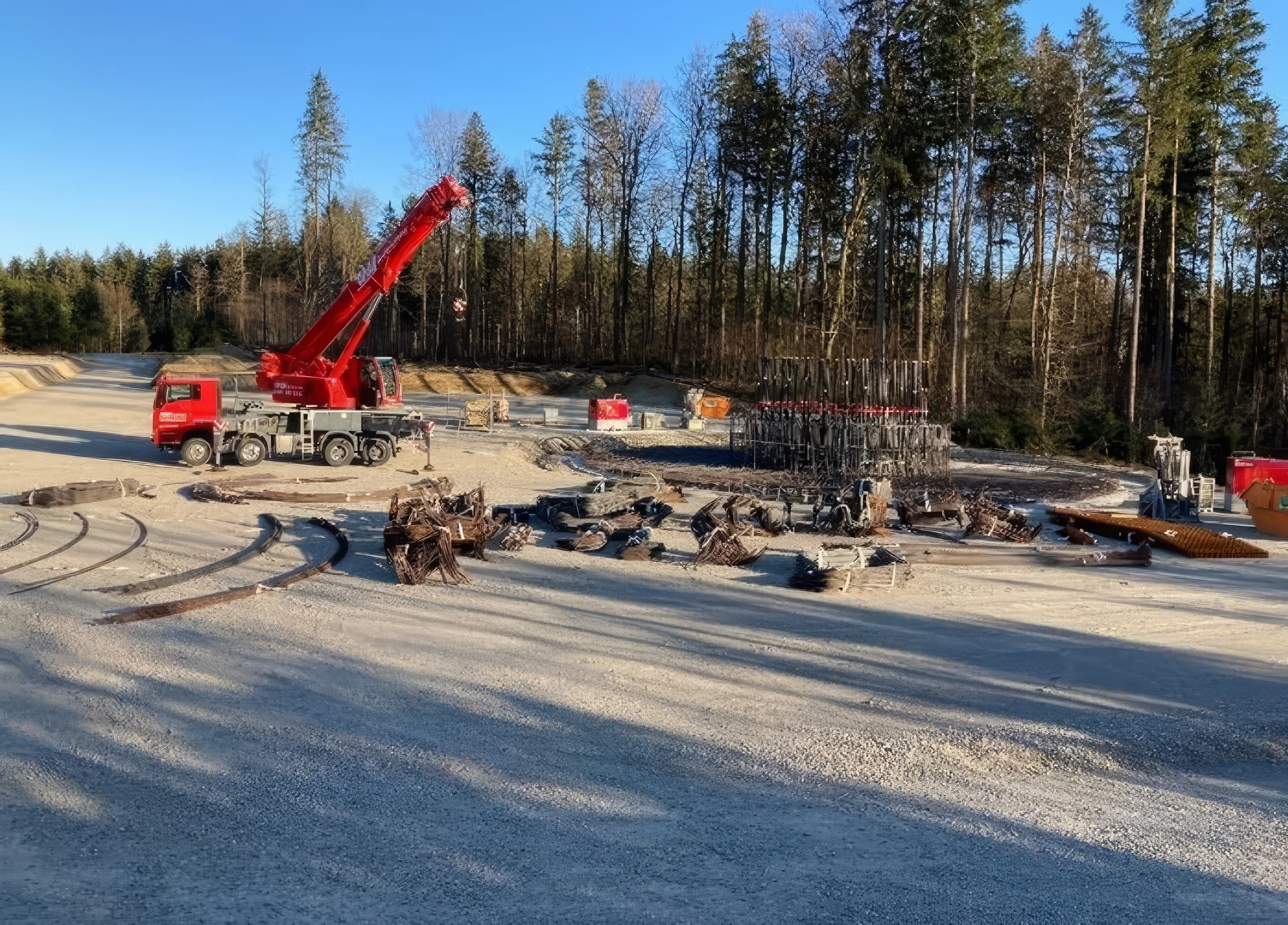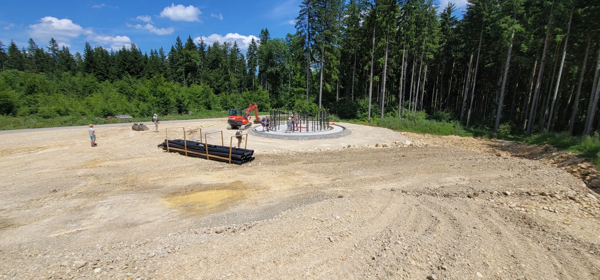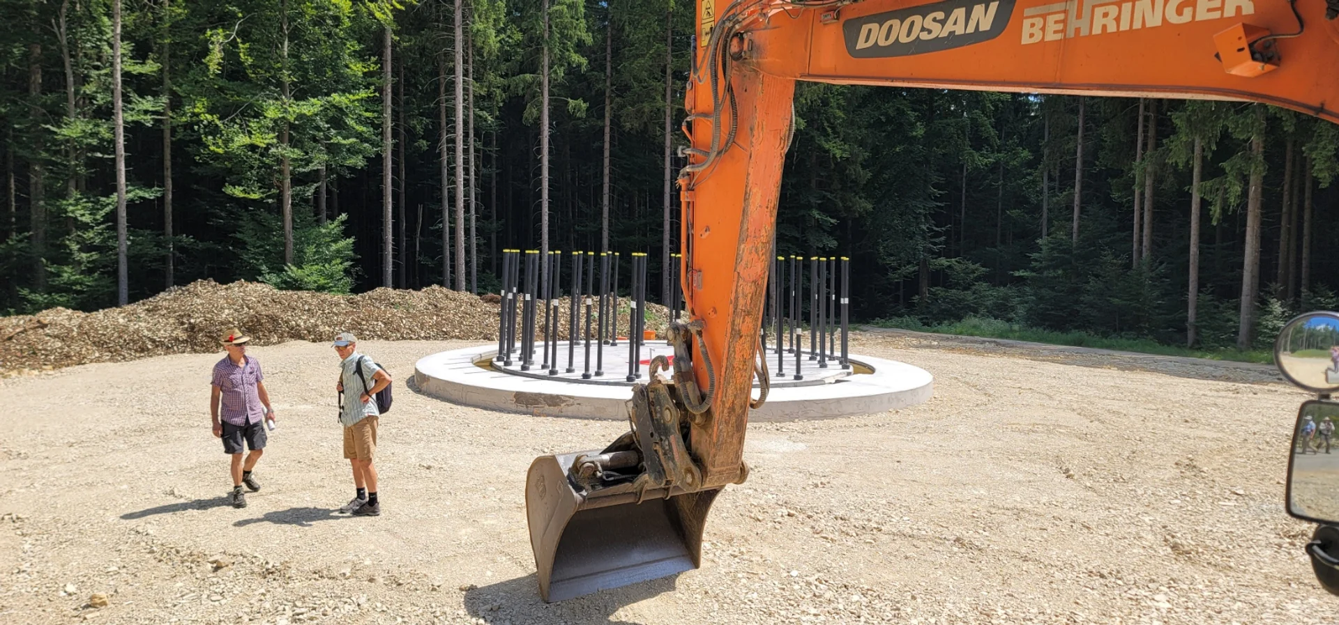 Der Bau einer Windkraftanlage im Wald beschränkt sich nicht auf einen „Mast im Grünen“. Jede Anlage erfordert breite, ganzjährig befahrbare Zufahrtsstraßen für Schwertransporte, großflächige Kranstellflächen und Lagerplätze, umfangreiche Rodungen sowie große Fundamentgruben aus Beton und Stahl. Hinzu kommen Leitungstrassen, Kabelgräben und Einspeisepunkte, die den Wald durchschneiden und bislang unberührte Bereiche dauerhaft verändern.