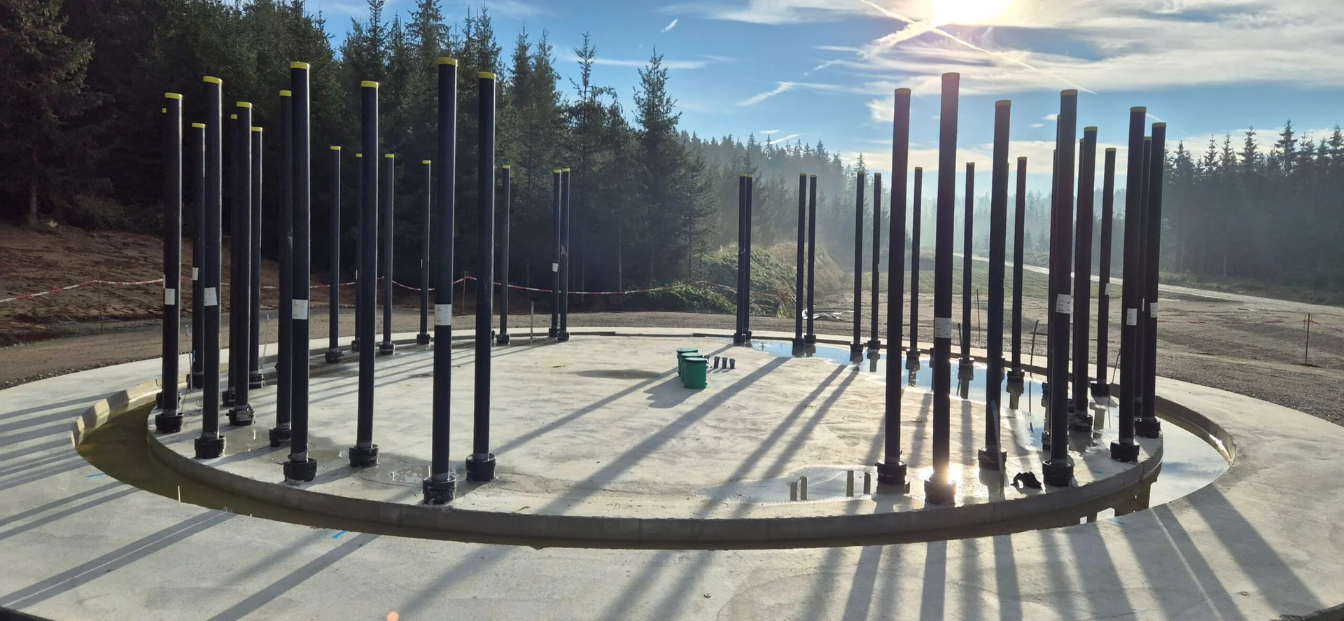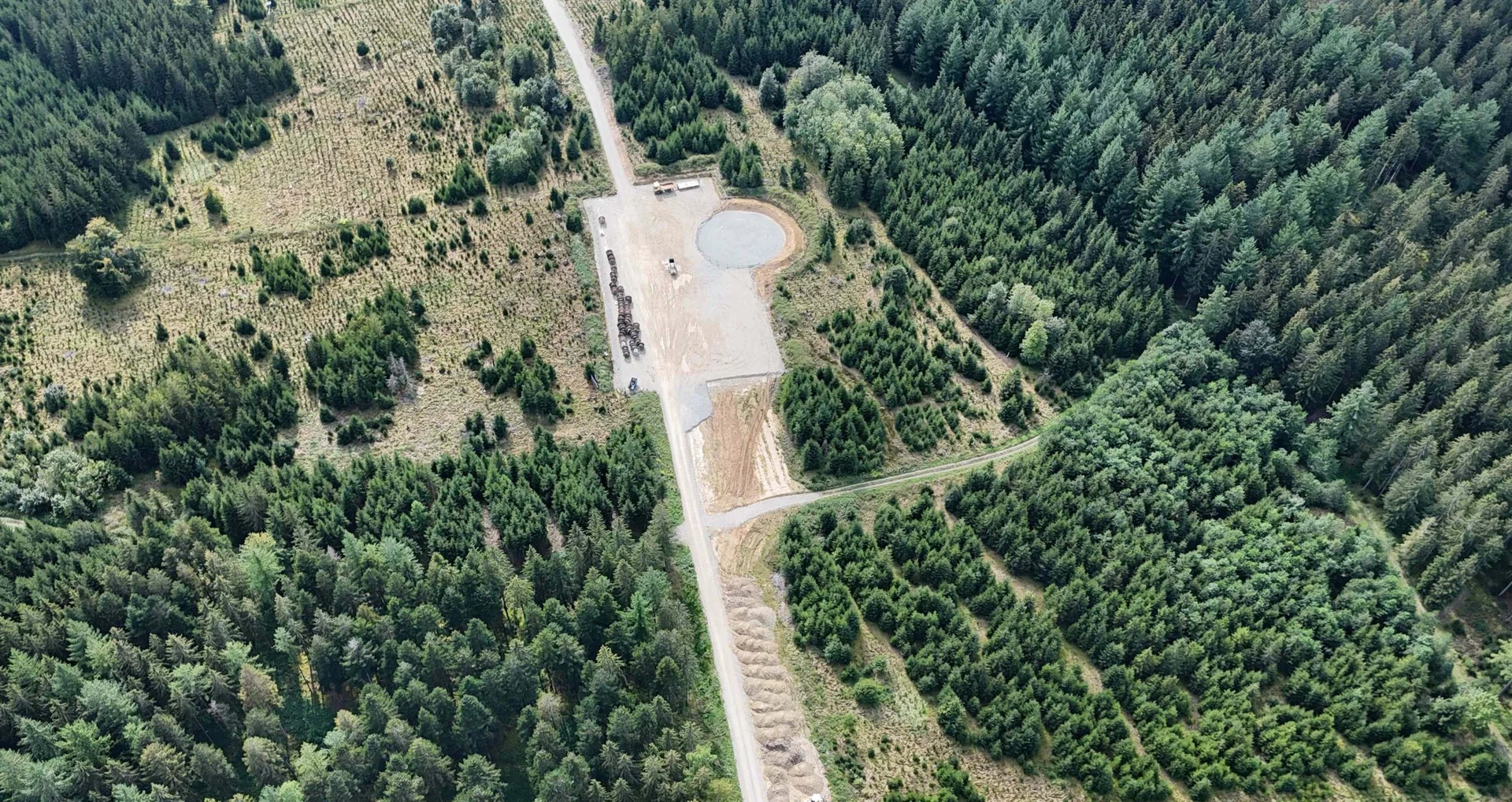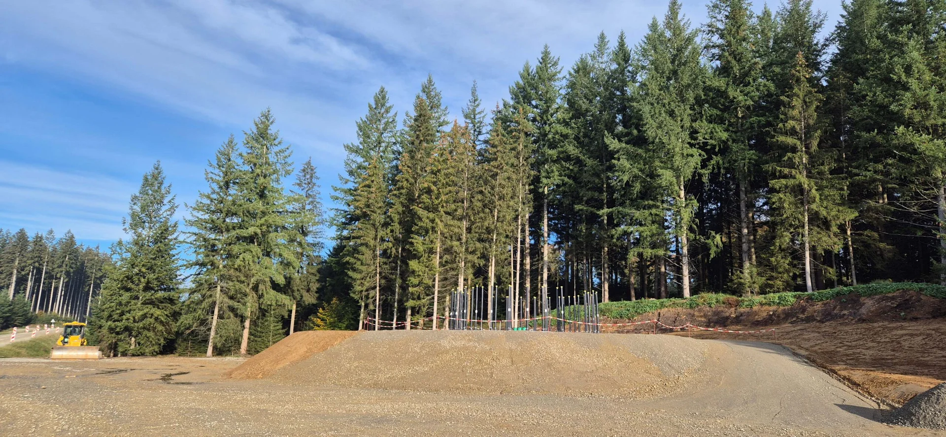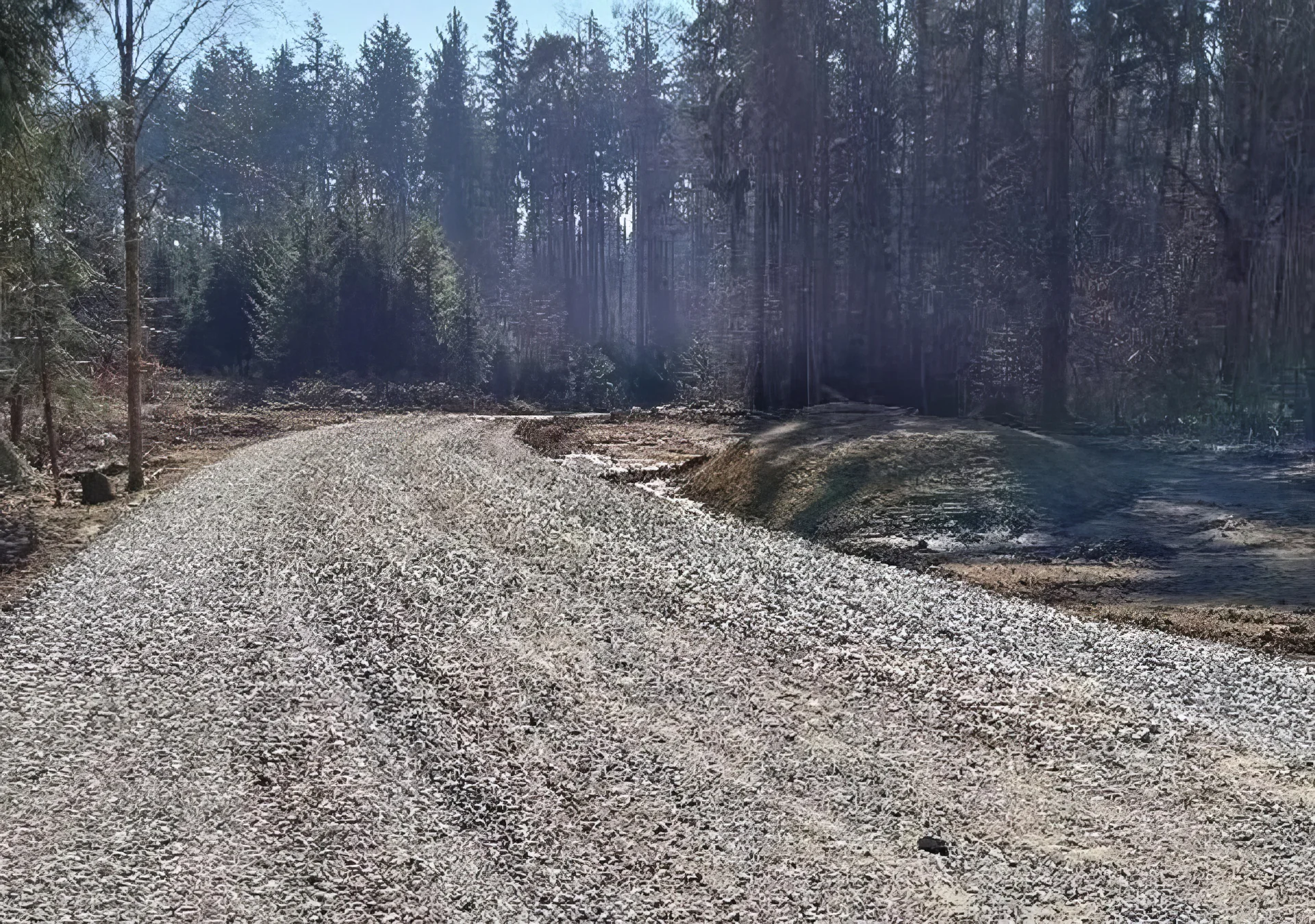 Der Bau einer Windkraftanlage im Wald beschränkt sich nicht auf einen „Mast im Grünen“. Jede Anlage erfordert breite, ganzjährig befahrbare Zufahrtsstraßen für Schwertransporte, großflächige Kranstellflächen und Lagerplätze, umfangreiche Rodungen sowie große Fundamentgruben aus Beton und Stahl. Hinzu kommen Leitungstrassen, Kabelgräben und Einspeisepunkte, die den Wald durchschneiden und bislang unberührte Bereiche dauerhaft verändern.