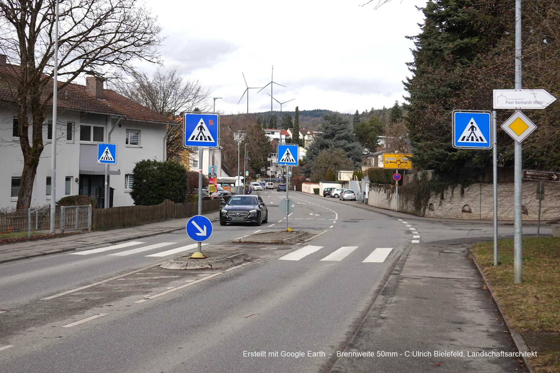 - Zusätzlich werden gelegentlich Telebrennweiten von 100–200 mm eingesetzt, um Details oder besonders relevante Ausschnitte (z.B. eine bestimmte Sichtachse) vergrößert darzustellen. Solche Tele‑Ansichten werden als solche kenntlich gemacht und können – insbesondere bei größeren Entfernungen – der tatsächlichen Wahrnehmung vor Ort besser entsprechen.